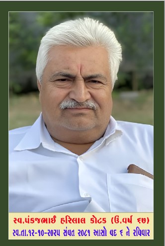 મોરબીના સ્વ. પંકજભાઈ હરિલાલ કોટકને હાર્દિક શ્રદ્ધાંજલિ