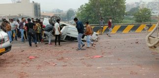 મોરબીના 8-a હાઇવે ઉપર ખડકાયેલા માટીના ઢગલાને કારણે કાર પલ્ટી મારી...