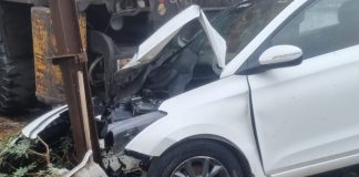 મોરબીના લાલપર નજીક કાર વીજપોલ સાથે અથડાતા વીજપોલ ધરાશાયી