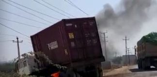 મોરબીના ખોખરા હનુમાન રોડ ઉપર કન્ટેનરમાં આગ લાગી: નાસભાગ
