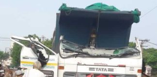 મોરબીમાં ભારે વાહનની પ્રવેશબંધી માટે રખાયેલી આડશ સાથે ટ્રક ટકરાયો