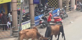 શનાળા રોડ પર બે આખલાઓ યુધ્ધે ચડતા રાહદારીઓ ભયભીત