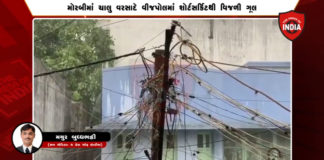 મોરબીમાં રવાપર રોડ પર ચાલુ વરસાદે વીજ પોલમાં શૉર્ટસર્કિટથી વીજળી ગૂલ...