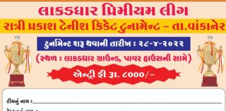 વાંકાનેરમાં તા.28 થી લાકડાધાર પ્રીમિયર લીગ રાત્રી ટેનિશ પ્રકાશ ક્રિકેટ ટૂર્નામેન્ટ